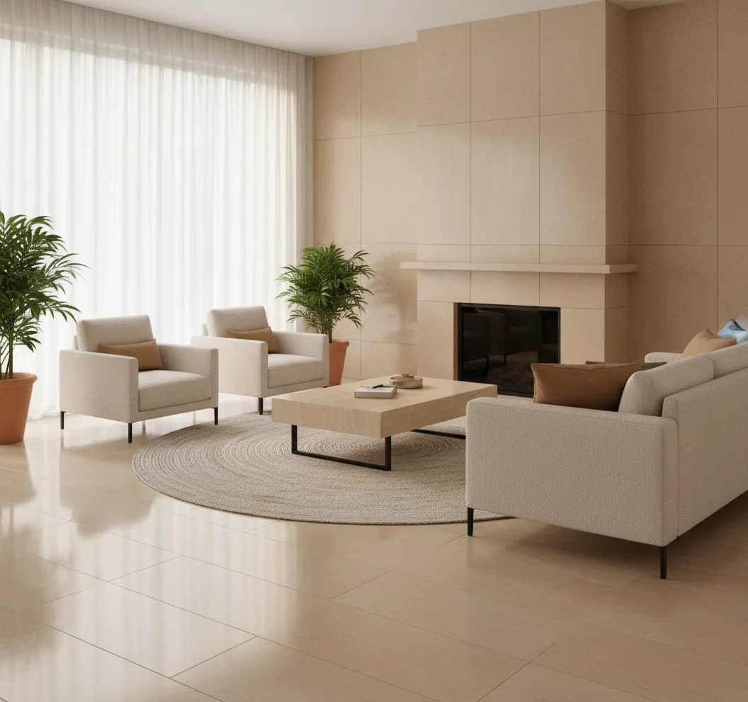 La Cinnamon Stone es una piedra natural de tonos beige cálidos con matices suaves y textura homogénea que transmite serenidad y elegancia. Su aspecto limpio y natural la convierte en una opción ideal para proyectos de arquitectura y diseño interior que buscan luminosidad y armonía.